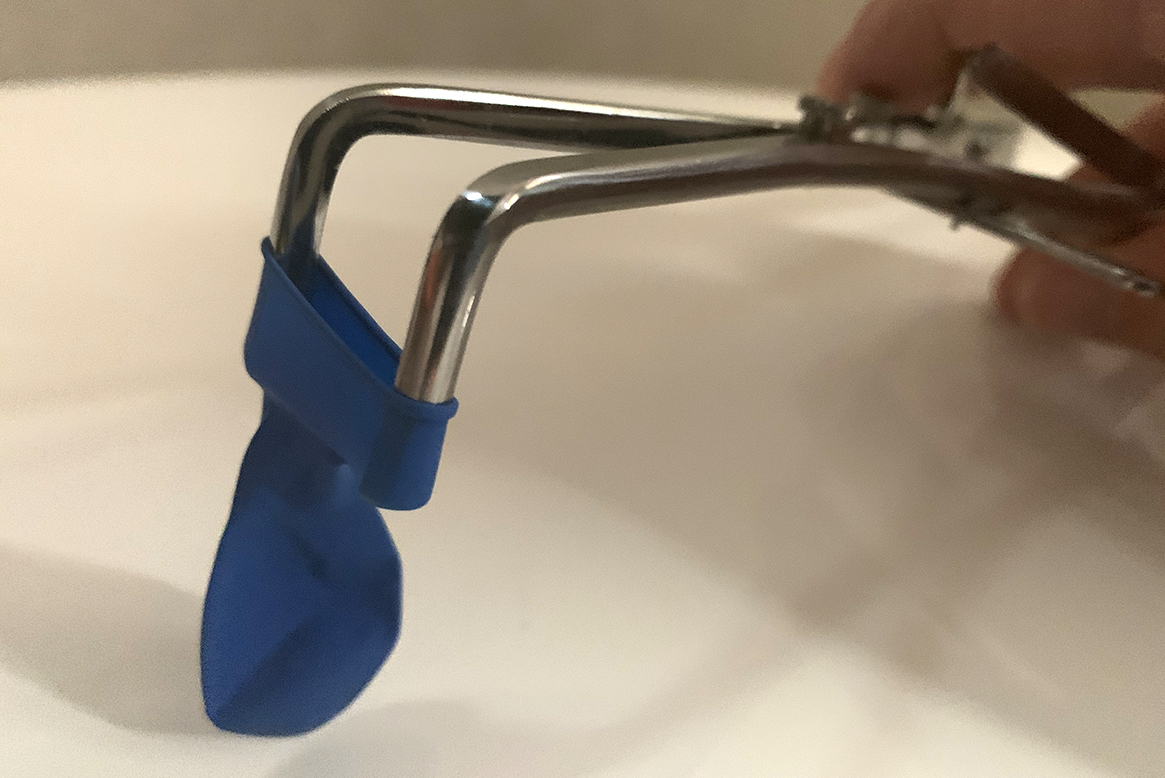 あるとき、ネットで見たアイデアを参考に、プラスチック板とバネ、クリップで“それっぽい器具”を試作しました。最初は「わりといい感じかも…?」と思ったけれど、10分も経たないうちにズレて痛くなって、結局断念。